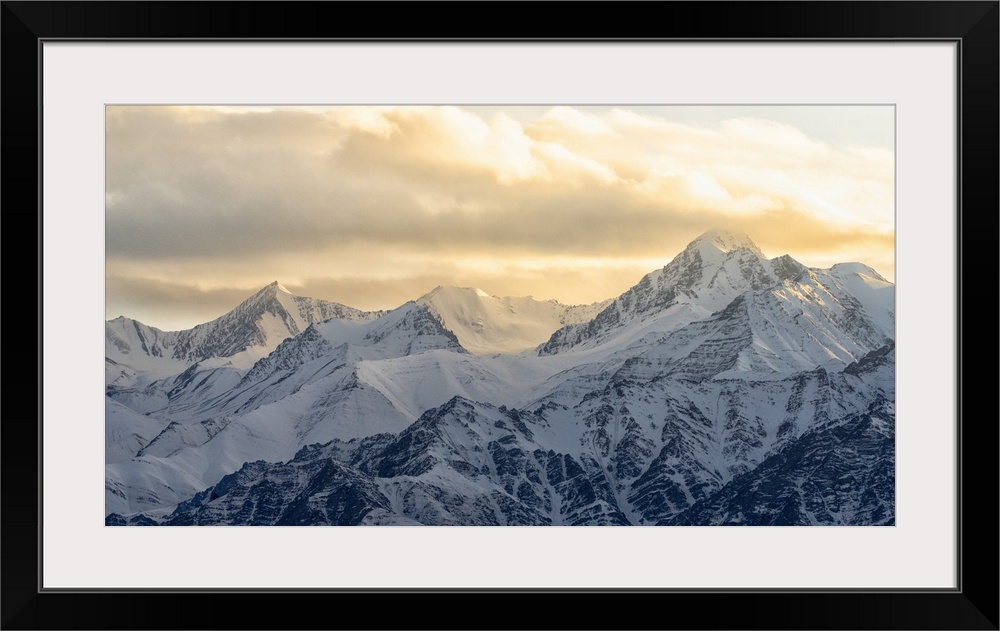 <p>India, Ladakh, Leh, Himalaya Mountains. The mountains around the town of Leh are lit up by the setting sun.</p>