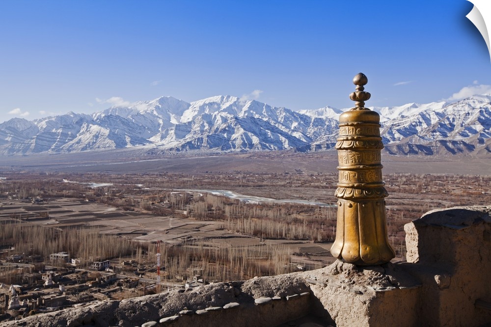 <p>India, Ladakh, Thiksey. View of the Indus Valley from Thiksey Monastery.</p>