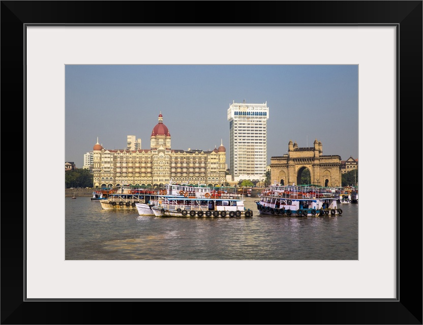 <p>India, Maharashtra, Mumbai, Taj Mahal Palace Hotel and Gateway of India.</p>