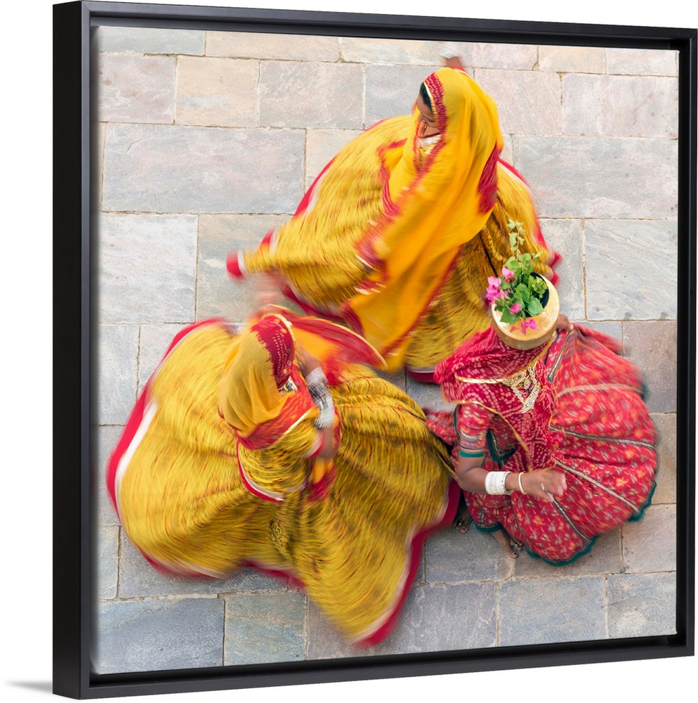 <p>India, Rajasthan, Jaipur, Samode Palace, women wearing colorful Saris dancing (MR, PR)</p>