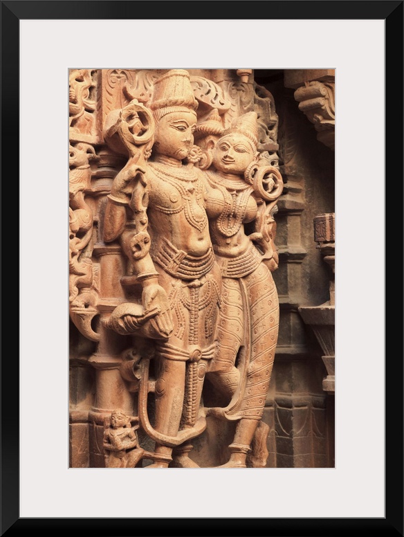 <p>India, Rajasthan, Jaisalmer, Jaisalmer Fort, Jain Temple, Stone Carving detail</p>