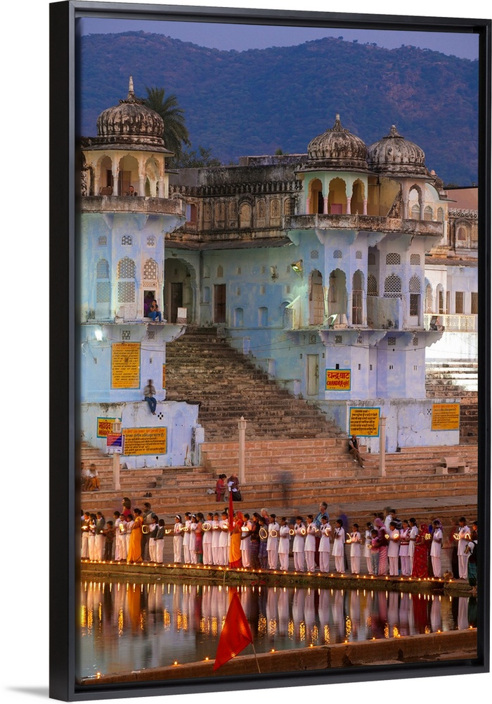 <p>India, Rajasthan., Pushkar, lakeside ceremony during Pushkar Camel Fair</p>
