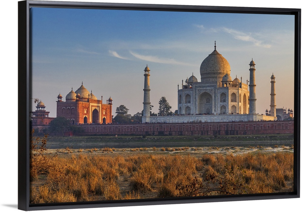 <p>India, Uttar Pradesh, Agra, Taj Mahal, The cenotaph built by the Mughal emperor Shah Jahan, to house the tomb of his favorite wife, Mumtaz Mahal, seen from the Mehtab Bagh garden on the north side of the Yamuna river</p>