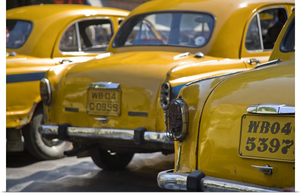 <p>India, West Bengal, Kolkata, Calcutta, Yellow ambassador taxis</p>