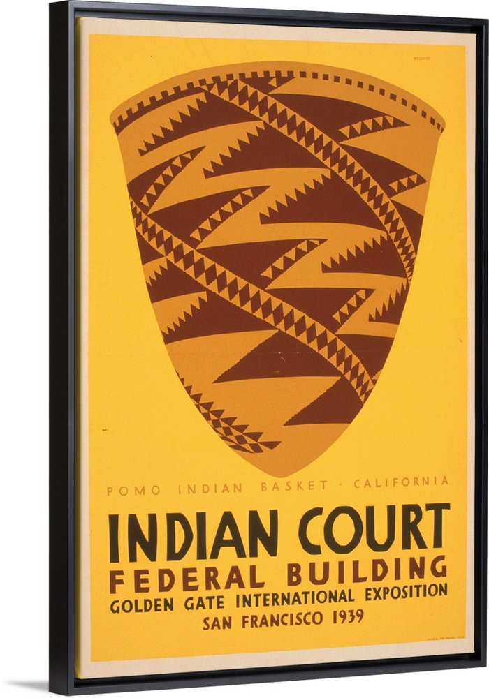 <p>Artwork for the Indian Court exhibit at the Golden Gate International Exposition in San Francisco, showing Pomo Indian basket.</p>