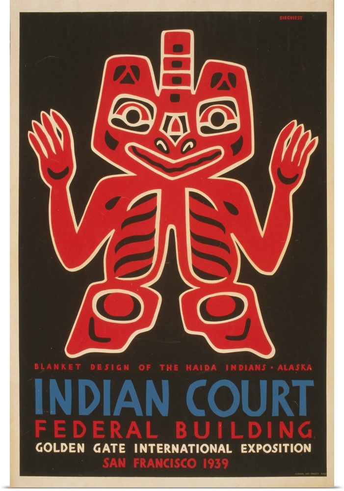 <p>Artwork for the Indian Court exhibit at the Golden Gate International Exposition in San Francisco, showing Haida Indian blanket design.</p>