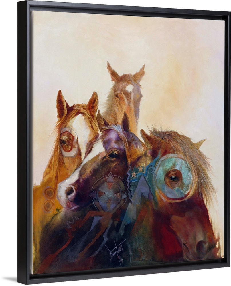 <p>Contemporary painting of wild horses painted in Native American regalia.</p>