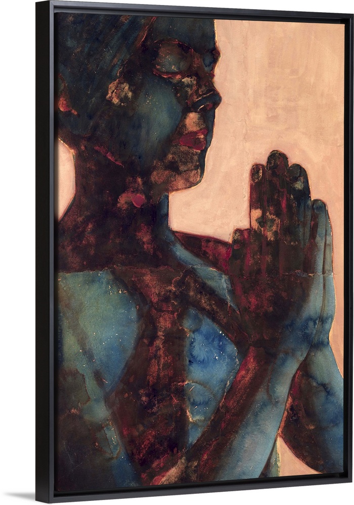 <p>Contemporary watercolor painting of a woman with her hands together as if praying.</p>