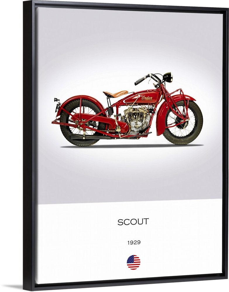 <p>Photograph of an Indian Scout 101 1929 printed on a white and gray background.</p>