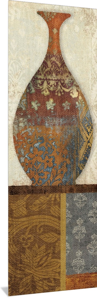 <p>Contemporary painting of a decorative vase in earth tones.</p>