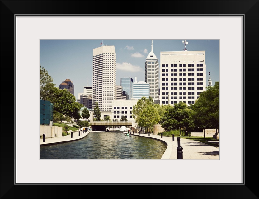 <p>USA, Indiana, Indianapolis, View of canal and skyscrapers</p>