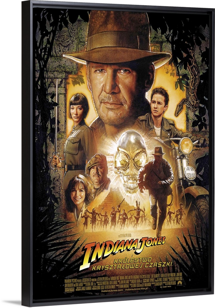 <p>Movie poster for the fourth Indiana Jones movie, showing characters from the movie including Harrison Ford.</p>