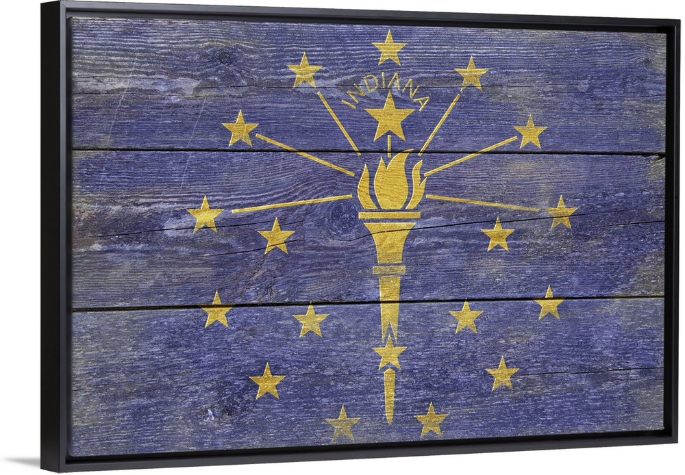 <p>The flag of Indiana with a weathered wooden board effect.</p>