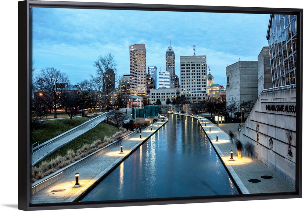 <p>Photo of the Indianapolis city skyline reflecting onto the Indiana Central Canal.</p>