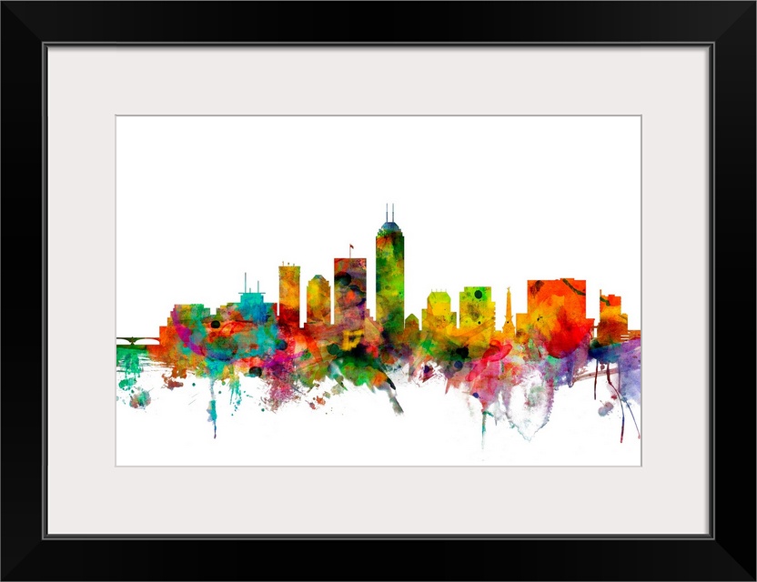 <p>Watercolor artwork of the Indianapolis skyline against a white background.</p>