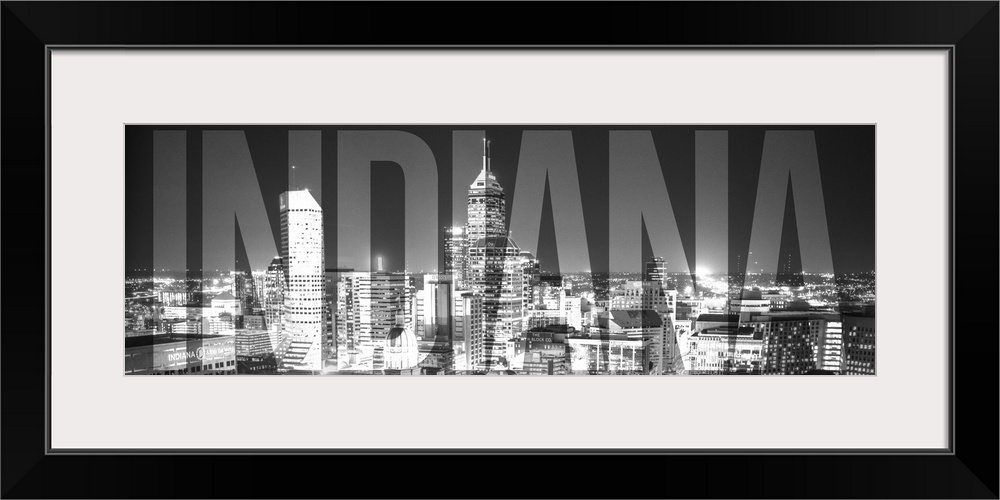 <p>Transparent typography art overlay against a photograph of the Indianapolis city skyline.</p>