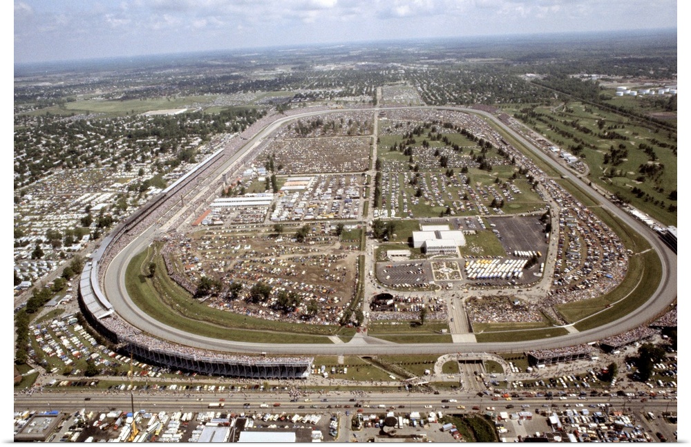 <p>Indianapolis Speedway. Aerial scene of Indy 500 race site at Indianapolis, Indiana.</p>