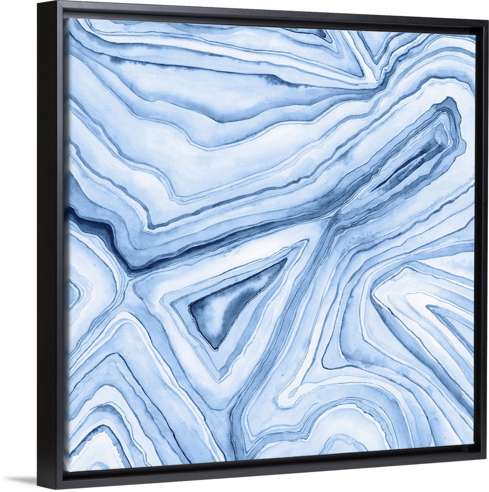<p>Contemporary watercolor painting of light and dark blue layers of paint to resemble agate.</p>