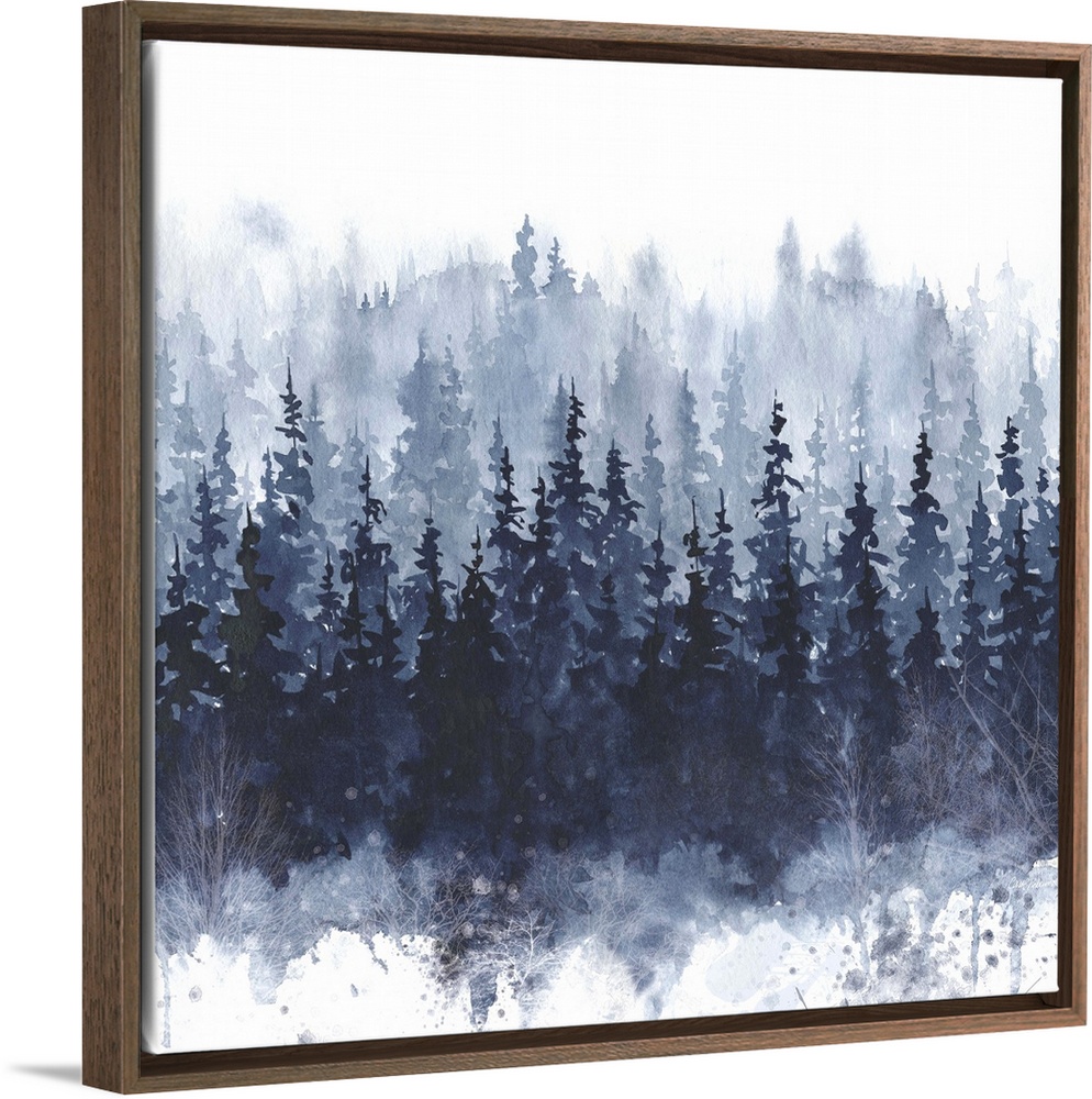 <p>Square watercolor painting of indigo trees with paint splatter on the bottom.</p>