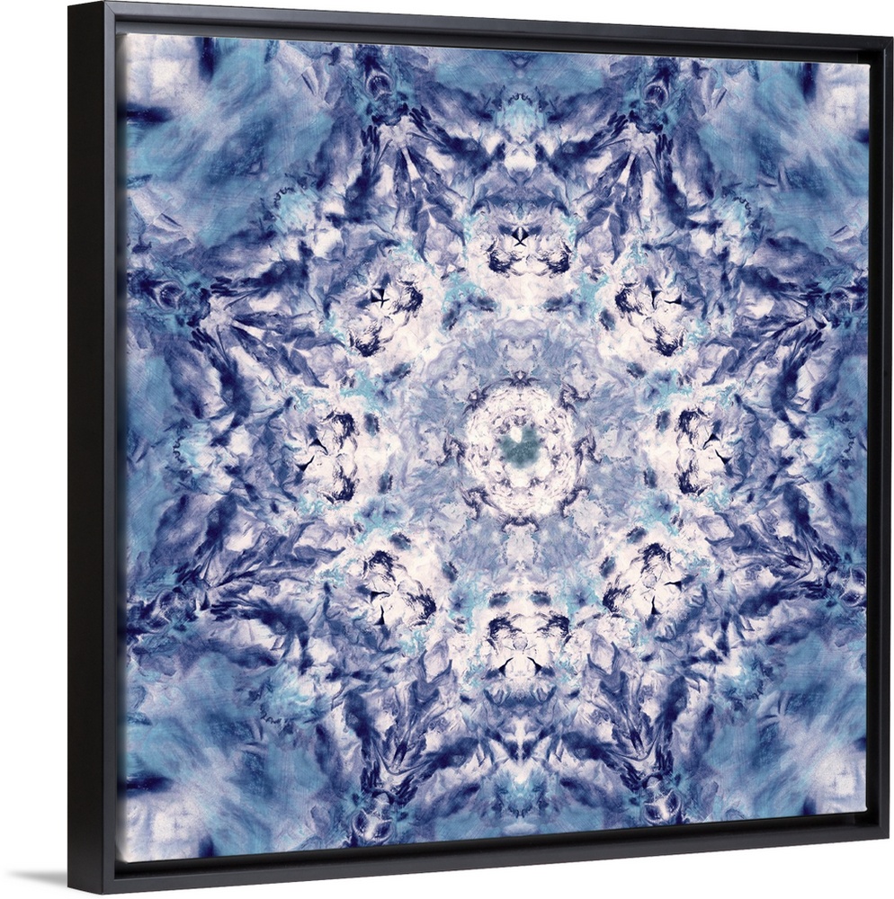 <p>Square abstract art in shades of blue and white hues with kaleidoscope-like patterns and designs.</p>