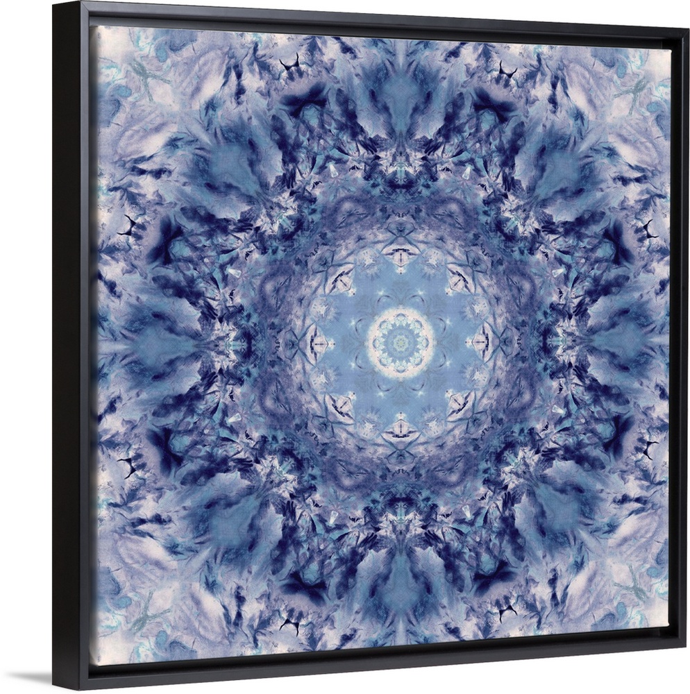 <p>Square abstract art in shades of blue and white hues with kaleidoscope-like patterns and designs.</p>