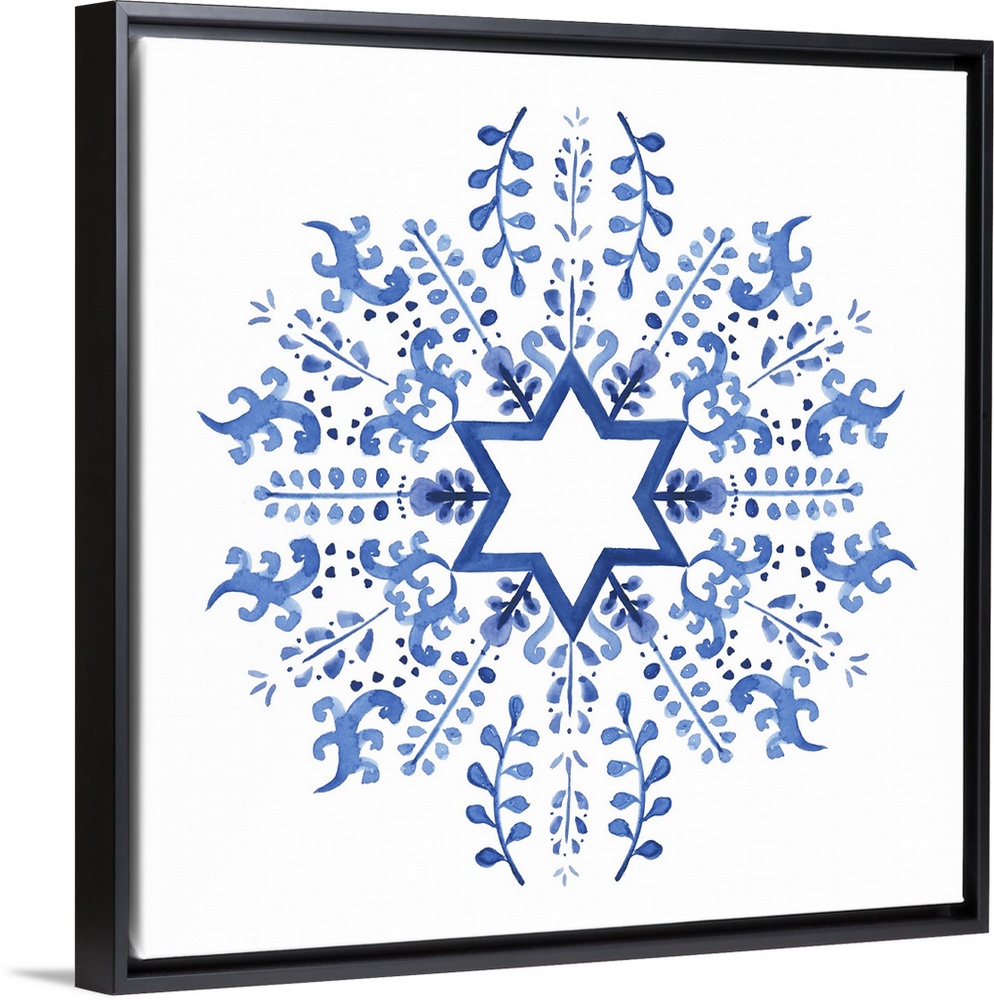 <p>Indigo floral design around a centered interpretation of the Star of David.</p>
