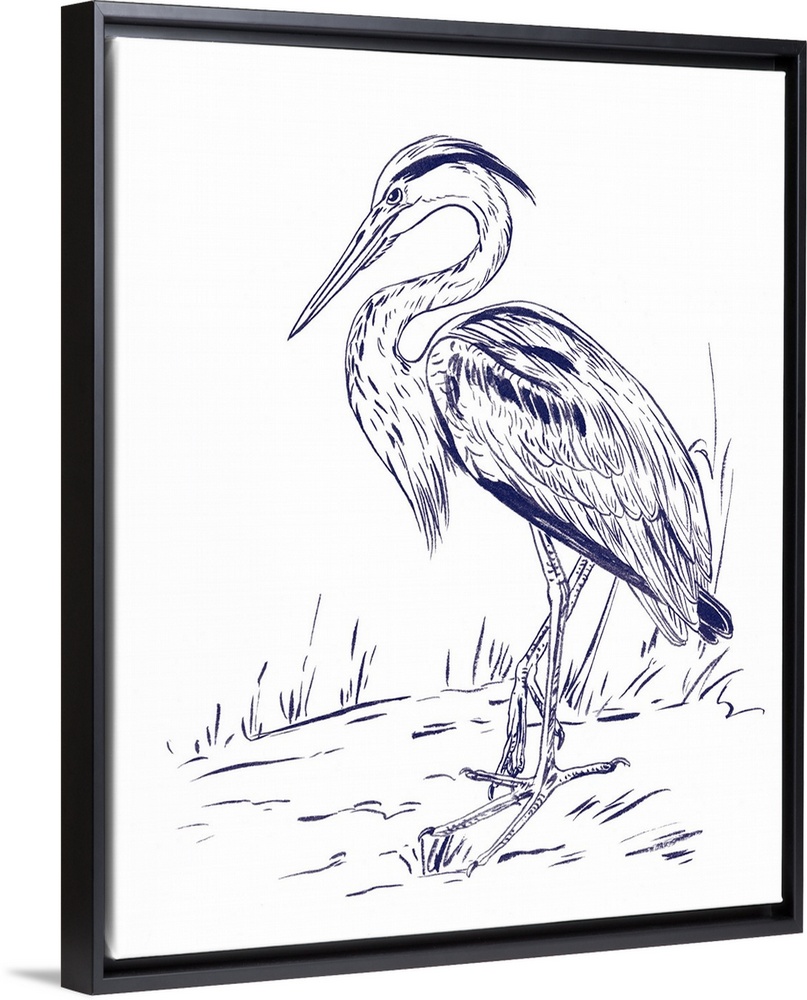 Art Coastal Blue Wall Art Decorative Art Drawing Melissa Wang Wildlife Bird Heron and Egret
