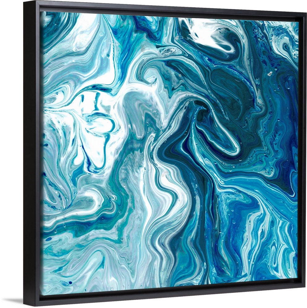 <p>Square abstract decor with marbling colors of blue and white.</p>