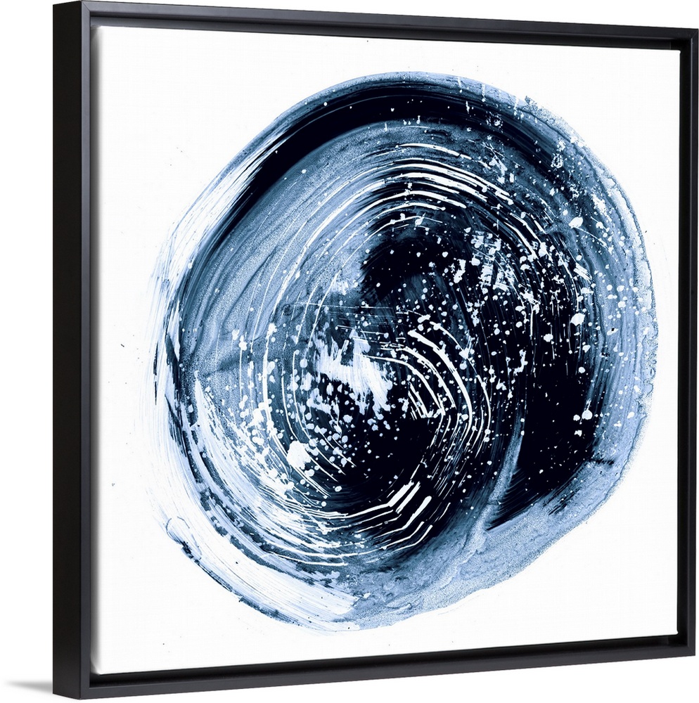 <p>Contemporary abstract painting of a circular nebula shape in a dark indigo blue against a white background.</p>