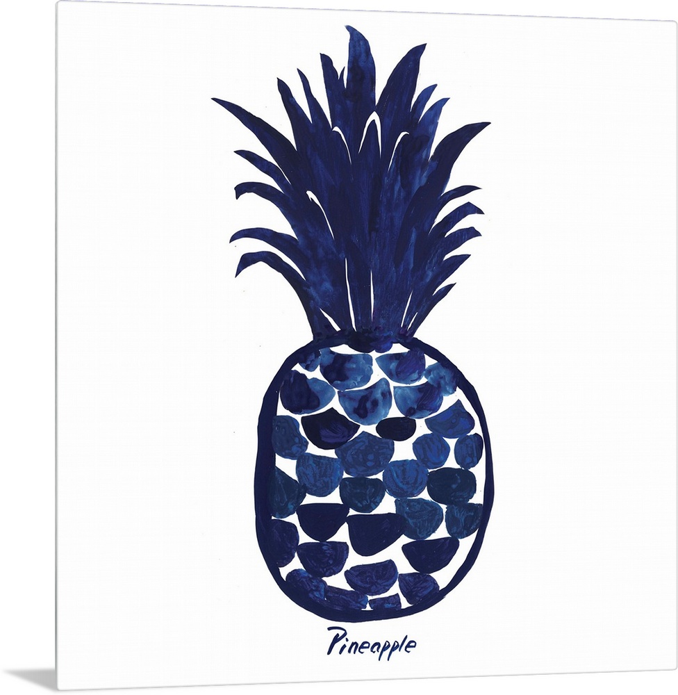 <p>Navy blue ink wash painting of a pineapple on white.</p>