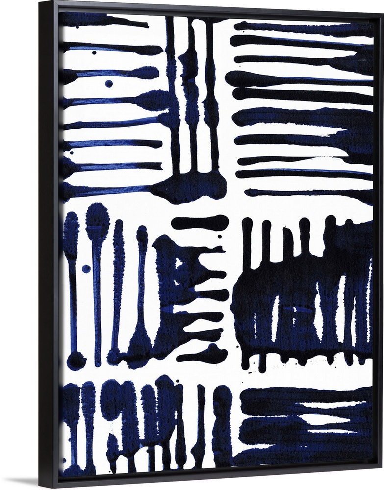 <p>Contemporary patterned artwork using dark indigo blue against a white background.</p>