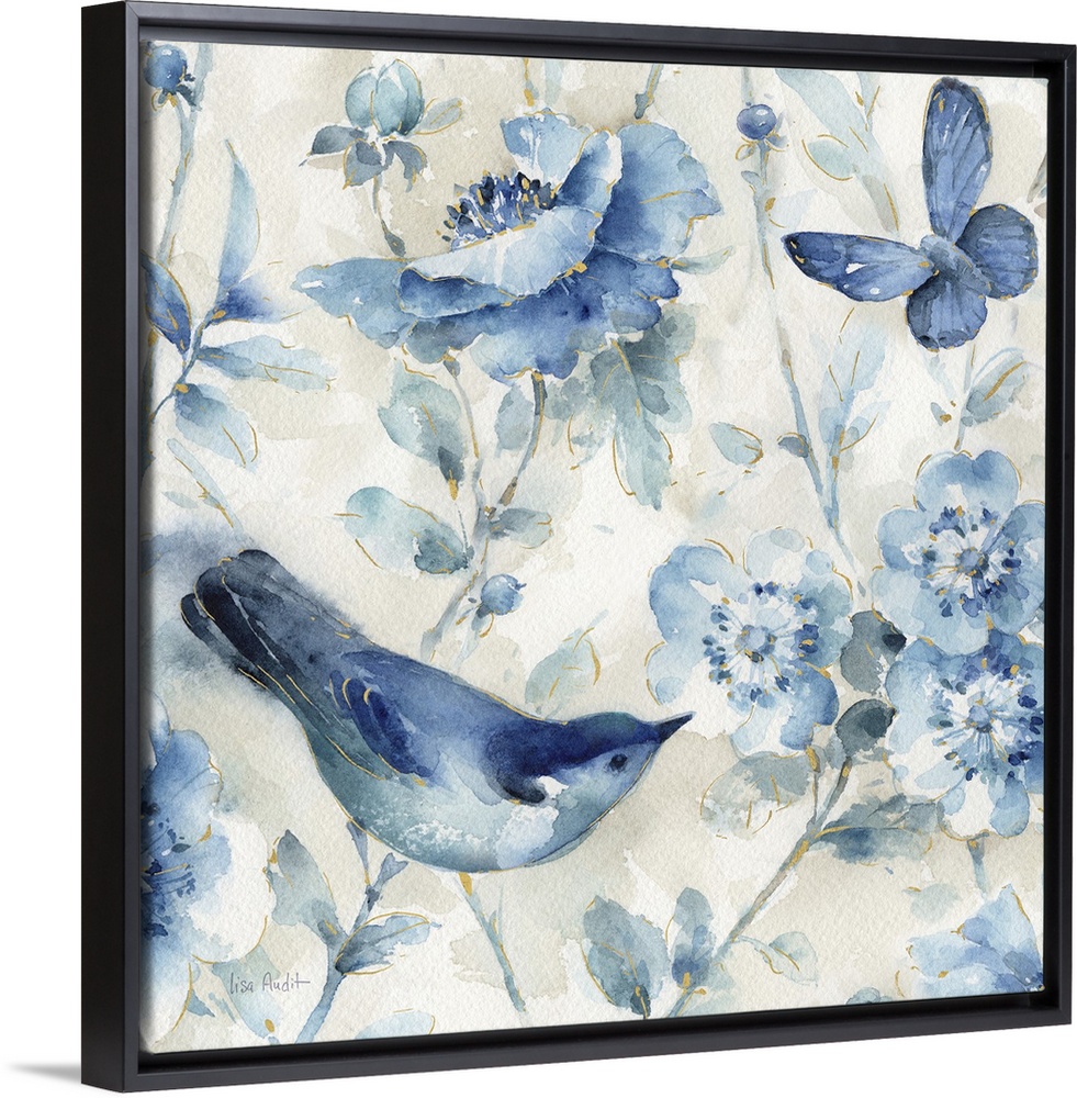 Art Traditional Lisa Audit Blue Wall Art Decorative Art Florals Painting Watercolor Wildlife Bird Garden Birds