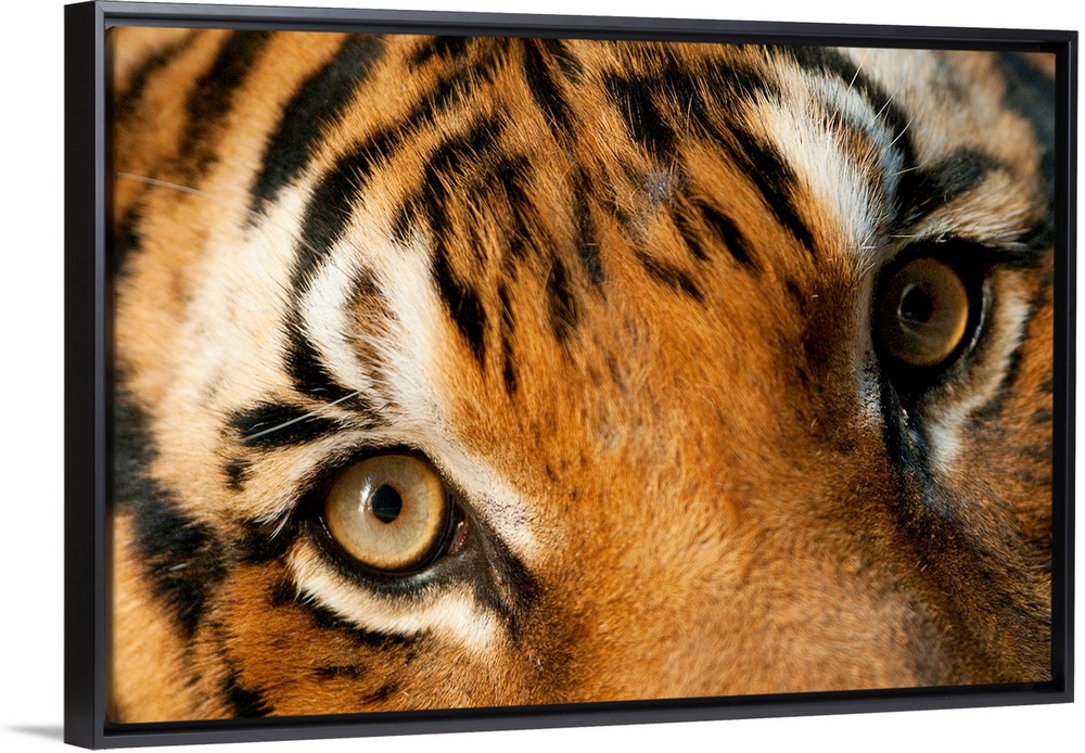 <p>Big, horizontal, close up photograph from the National Geographic Collection of the eyes and forehead of an Indochinese tiger. Taken at the Henry Doorly Zoo in Omaha, Nebraska.</p>