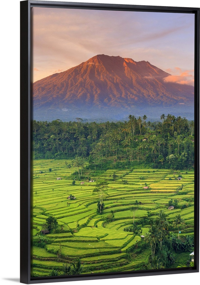 <p>Indonesia, Bali, Redang, View of Rice Terraces and Gunung Agung Volcano</p>