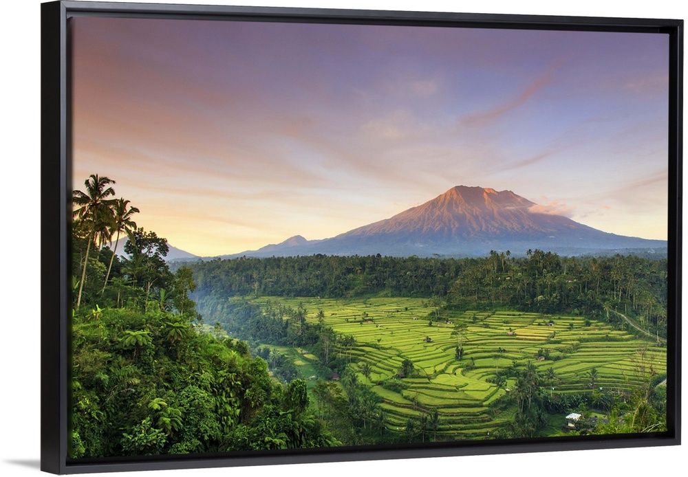 <p>Indonesia, Bali, Redang, View of Rice Terraces and Gunung Agung Volcano</p>
