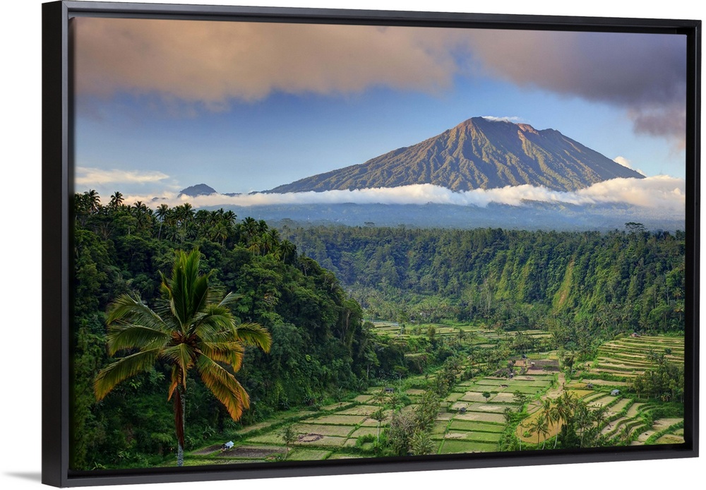 <p>Indonesia, Bali, Rendang Rice Terraces and Gunung Agung Volcano</p>