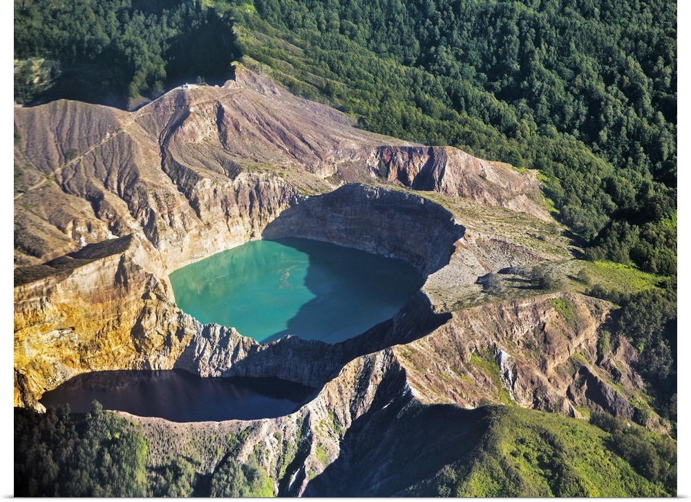 <p>Indonesia, Flores Island, Kelimutu. Two stunning crater lakes in the caldera of Mount Kelimutu from the air.</p>