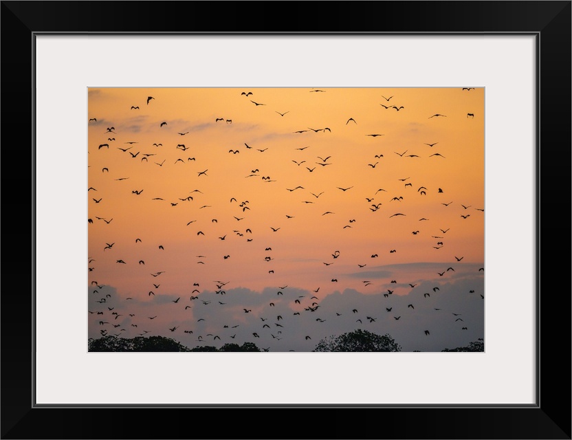 <p>Indonesia, Lesser Sunda Islands, Kalong Island. Flying foxes in their thousands leave their daytime roosts among mangrove trees on Kalong Island at dusk.</p>