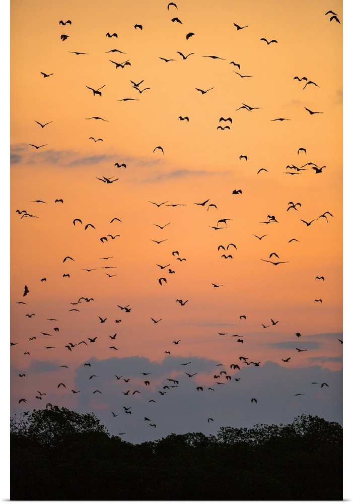 <p>Indonesia, Lesser Sunda Islands, Kalong Island. Flying foxes in their thousands leave their daytime roosts among mangrove trees on Kalong Island at dusk.</p>