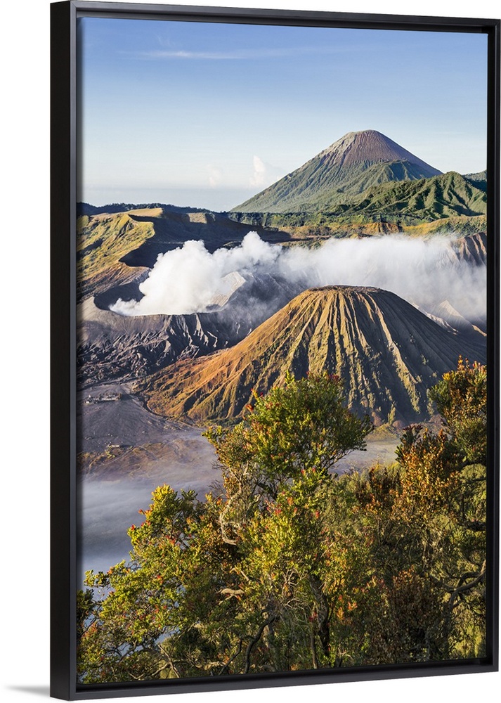 <p>Indonesia, Java, Bromo. A stunning volcanic landscape from Mount Penanjakan at sunrise. Active Mount Bromo (left) and Mount Batok (centre foreground) lie in the Sea of Sand with Mount Semeru in the distance.</p>
