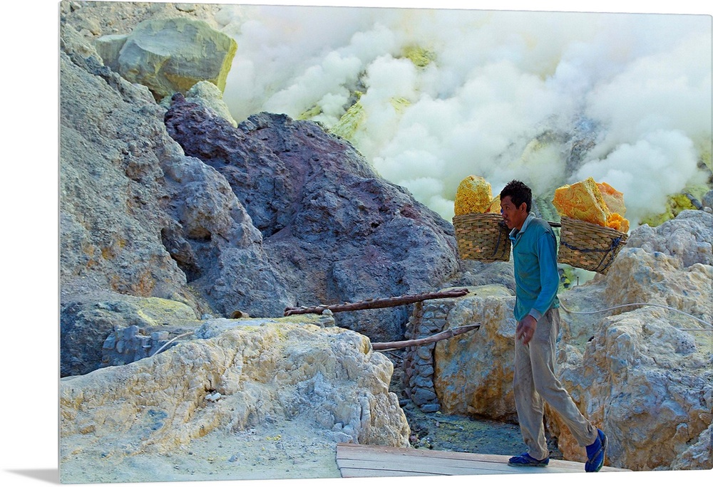 <p>Indonesia, Jawa island, Java, Kawah Ijen Volcano, mining sulfur by hand</p>