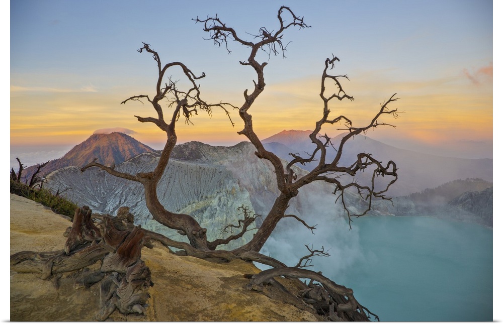 <p>Indonesia, Jawa island, Java, East Java, View of the crater of the volcano Kawah Ijen at sunrise</p>