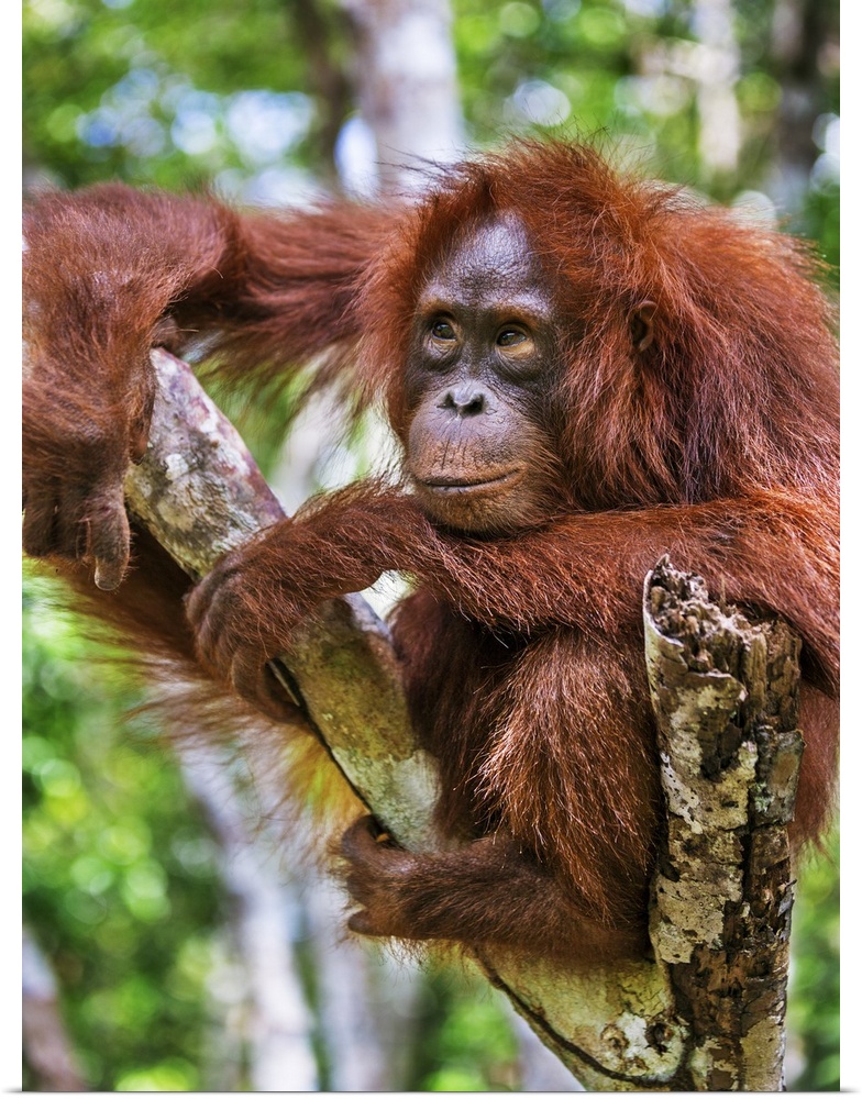 <p>Indonesia, Central Kalimatan, Tanjung Puting National Park. A young Bornean Orangutan resting in a tree.</p>