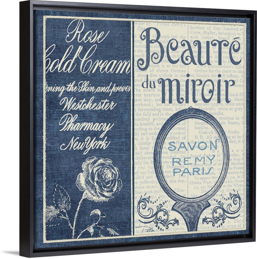 <p>Contemporary artwork of a mirror on the right of the image and ornate text to the left.</p>