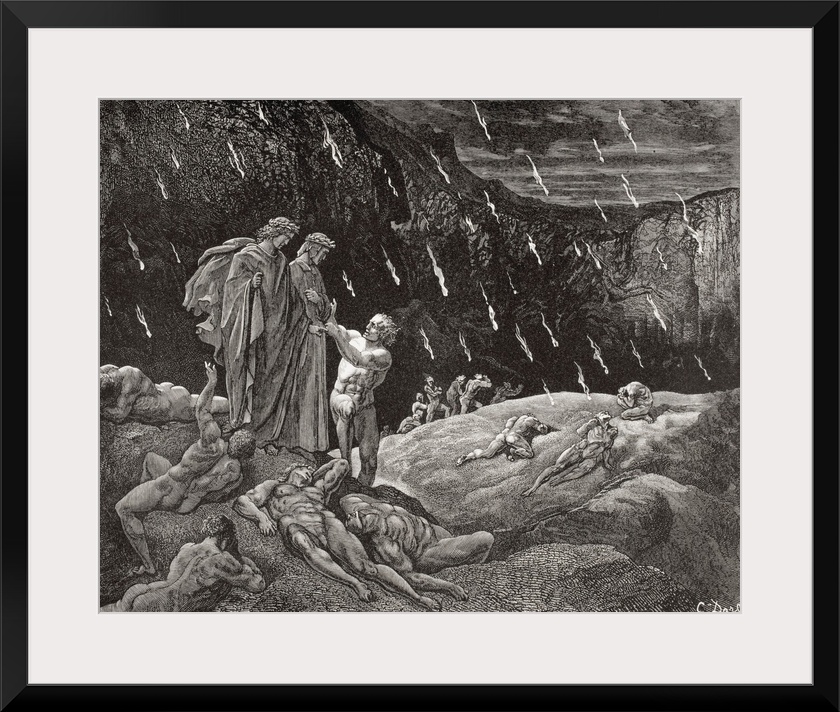 <p>Engraving By Gustave Dore, 1832-1883, French Artist And Illustrator, Inferno By Dante Alighieri, Canto XV, Lines 28 And 29.</p>