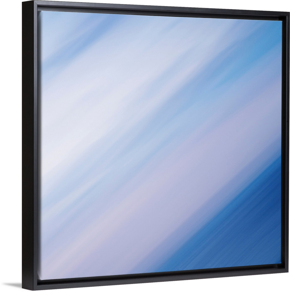 <p>A contemporary abstract of strong energetic diagonal lines in blues, whites and soft palest pinks echoing skies and seas.</p>