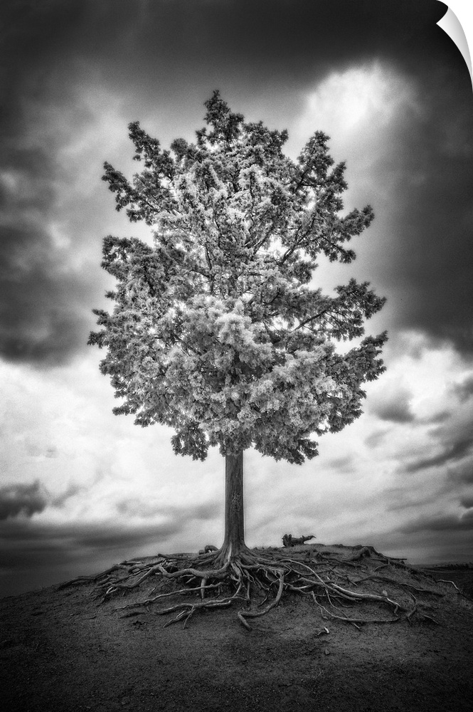 <p>Infrared view of tree with exposed roots, near Cosona, Tuscany, Italy.</p>