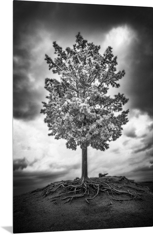 <p>Infrared view of tree with exposed roots, near Cosona, Tuscany, Italy.</p>