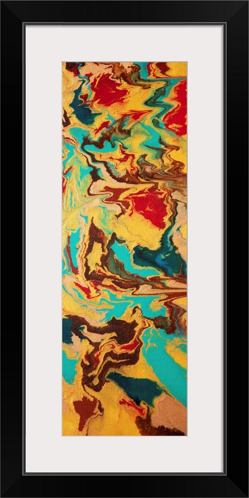 <p>Contemporary abstract painting in turquoise, brown, gold, and red.</p>