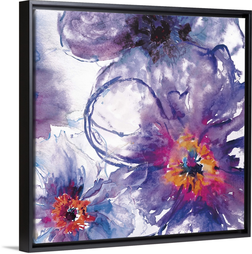 <p>Contemporary home decor artwork of purple abstract flowers.</p>